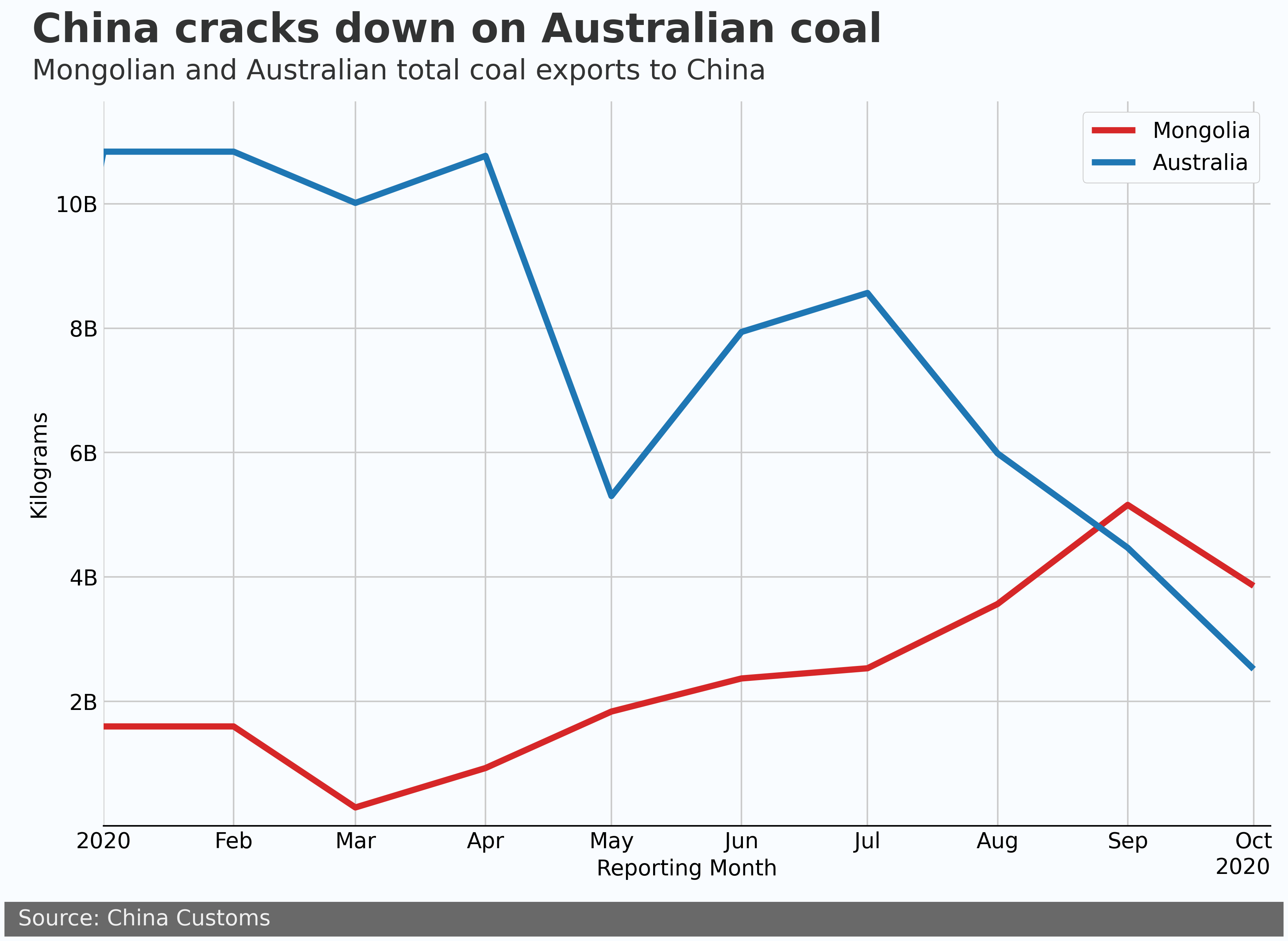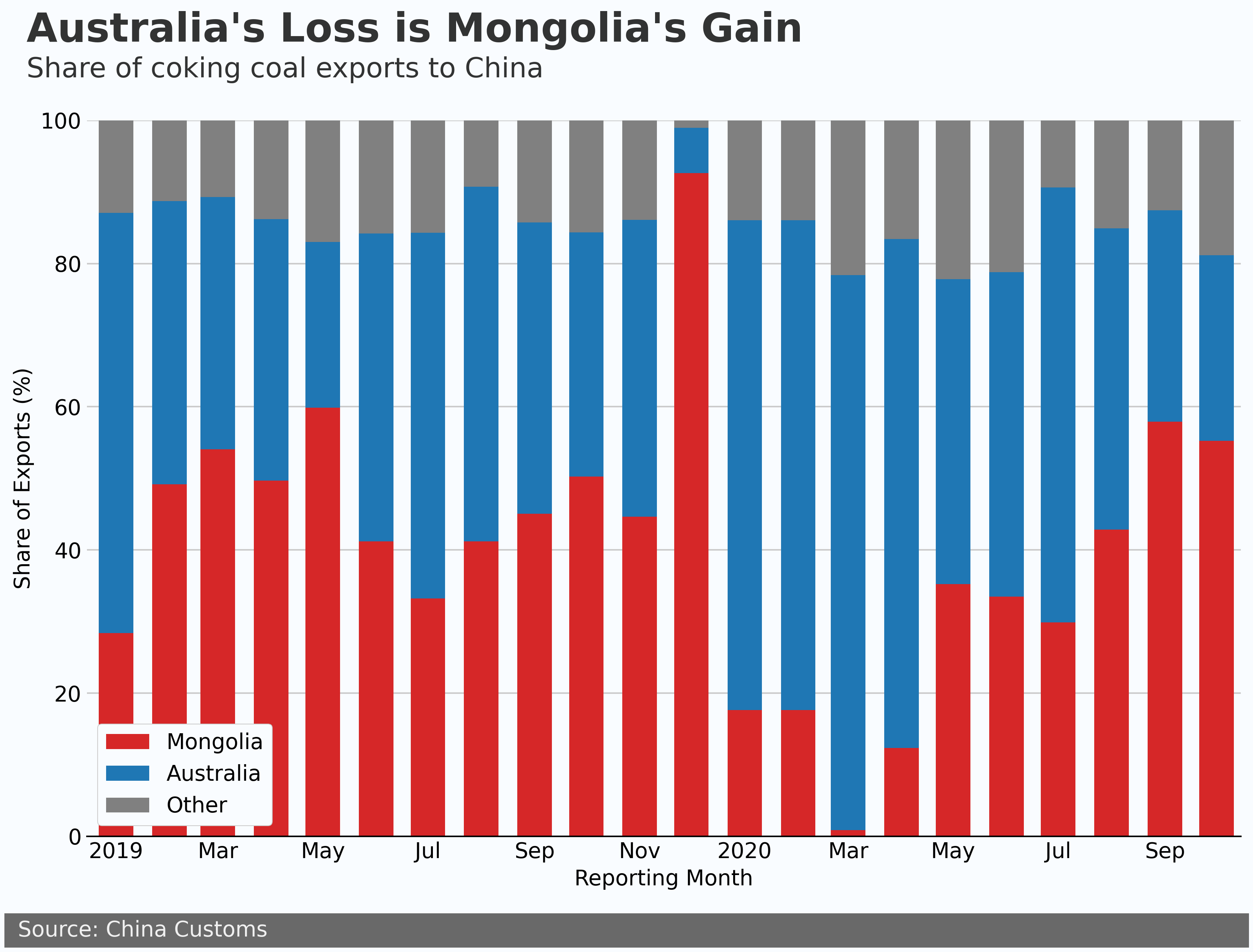 How China's trade spat with Australia created an opportunity for Mongolia to increase its coking coal exports.